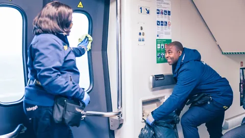 Cleaning the train interior